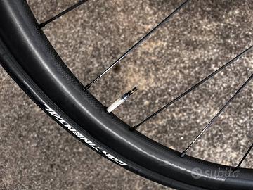 Vendo coppia di ruote in carbonio per freni a disco attacco a 6 fori. Cerchi in carbonio della MCFK (24 raggi) altezza 35mm Larghezza canale interno 21mm, colore Carbonio naturale UD 325g peso di un solo cerchio.