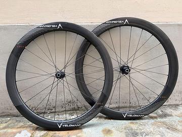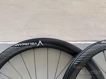 Vendo ruote in carbonio Velomann V50R per bici da strada ma compatibile anche con gravel per freni a disco Ruote in buone condizioni, presentano qualche piccolo segno come in foto, ma sono perfettamente dritte e i cuscinetti sono in perfetto stato Adatta a perni passanti 12-100 e 12-142 Compatibile con pacco pignoni SRAM XDR 12v Rival/Force/Red etc Altezza: 50 mm Numero raggi anteriori e posteriori: 24 Possibile montarla con copertoni o con tubeless ready Attacco freni a disco Centerlock Canale interno da 21 Canale esterno da 30 Made by Vision Peso 1630g con nastro Smontate da Bianchi Oltre Prezzo 400 per ruote nude Prezzo +30 euro per con copertoni nuovi Vittoria da 30 Prezzo +30 con dischi e ghiere Prezzo +35 con Cassetta Ultegra 12v Prezzo +25 con Cassetta Ultegra 11v Spedizione disponibile in tutta Italia. Disponibile a Torino e Chivasso. Posso fornire distanziali per il corpetto. Su richiesta posso fornire altre foto. No perditempo. No scambio. perno disk disco dischi disch cerchi ruota cerchio anteriore posteriore gravel ciclocross passante perni passanti 700 28 622 21c E-Thru tlr Clincher specialissima sprint xr4