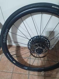 Ruote tenute qualche mese come doppia ruota da strada per la gravel, quindi hanno percorso circa 400km, e sono perfette, leggere e scorrevolissime.