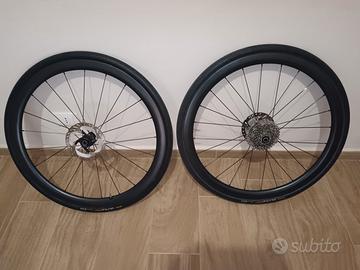 Vendo ruote vision metron sl 40 originali, sono stati tolti gli adesivi per una questione estetica mia personale, ma gli adesivi si trovano tranquillamente in commercio. Le ruote sono interamente in carbonio sia per camera d aria e per tubeless. Vendo completi di copertoncini continental 28 e camera d aria, e anche i dischi shimano ultegra. NO PACCO PIGNONI!!!