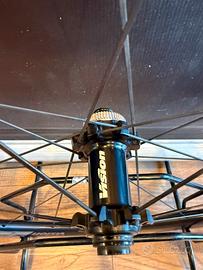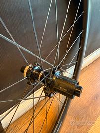 Coppia di ruote in carbonio Vision SC 55 per freno a disco center lock . Ruote usate in ottimo stato, sia estetico che funzionale . Cuscinetti ottimi . Ruota libera per Shimano 11-12v Profilo cerchio 55mm Tubeless ready Possibilita di spedizione