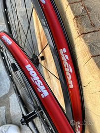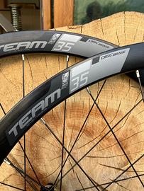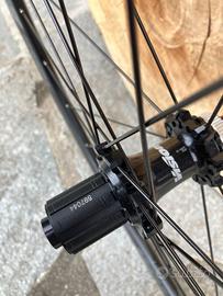 Coppia Ruote nuove mai usate. In perfette condizioni - Montaggio: Camera d'aria / Tubeless Ready - Cerchi: alluminio - Profilo: 35 mm - Larghezza esterna: 23.7 mm - Canale: 19 mm - Freno: disco Center Lock - Mozzi in alluminio - 4 cuscinetti a cartuccia sigillati - Raggi a testa dritta - Nipples autobloccanti - Montate interamente a mano - Peso (produttore): 2010 gr. - Colore: nero anodizzato - Grafiche: grigio COMPATIBILITÀ MOZZI - Anteriore: Perno Passante 12x100 mm - Posteriore: Perno Passante 12x142 mm - corpetto SHIMANO HG