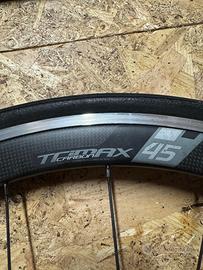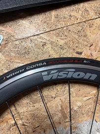 Ruote vision trimax Carbon 45, pista frenante in alluminio, usato in ottime condizioni completo di cassetta pignoni Shimano Ultegra 11-30 11 velocità è copertoncino Vittoria corsa graphene 2.0 in buono stato. Misura 622x17c