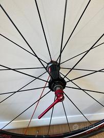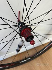 Ruote Vuelta Speed Carbon tubolari per freno tradizionale con corpetto Shimano 11 velocità, profilo da 40 mm, tubolari Continental Gatoskin tenute in buone condizioni come si può vedere dalle foto. Vendiamo come da foto con sganci, tubolari e pattini per freni.