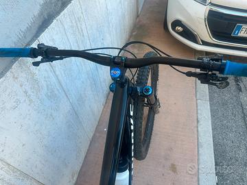 Cockpit: manubrio Renthal Fatbar 800mm 30mm rise, attacco manubrio specialized 31.8, manopole blu e nere nuove, spessori serie sterzo in carbonio, tappo serie sterzo blu.