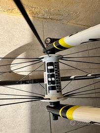 Sworks tarmac sl5 taglia 56 colorazione astana 2016 Gruppo completo dura ace meccanico 11v 50/34- 11/30 Ruote ffwd f3r con mozzi dt swiss 180 Manubrio,attacco manubrio e reggisella ritchey superlogic. Pedali non inclusi Catena kmc. Valuto permute con kart o moto da trial