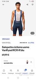 buongiorno vendo 5 salopette van rysel in ottime condizioni. sono tutte in taglia xl vendo perché troppo grandi. acquistate nel 2025 ho anche gli scontrini. nel dettaglio sono 2 modello endurance una blu una nera 2 modello racer(top di gamma) colore blu 1 modello racer felpato lungo colore nero prezzo di 25€ l'una le estive 30€ l'invernale