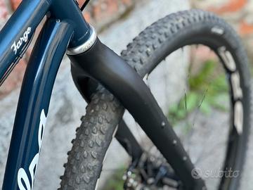 Fantastica bici in titanio per gravel monstercross viaggio trail o bikepacking. Taglia 18 M é una media leggermente abbondante. Da 173 a 184cm. Anno 2016, condizioni assolutamente ottime. Telaio Salsa Fargo ti per gravel monstercross viaggio trail bikepacking o mtb, l’ultimo saldato da Linskey! Attacchi per borse e portapacchi Taglia 18 ovvero una M media per altezze tra 172 e 183 Peso 10.2 senza pedali con lattice e salsicciotti nelle gomme. Anno 2016, condizioni assolutamente ottime. Assemblata con componenti eccellenti: serie sterzo Chris King, reggisella in titanio Linskey, guarnitura Sram X0 carbonio, Forcella in carbonio con attacchi borse o borracce Ruote in alluminio Drc canale 30 con mozzi Carbon ti. Trasmissione 11v Sella Brooks B17 pari al nuovo Disponibili freni a disco trp idraulici invece degli spyre Carbon a pari prezzoRuote in alluminio Drc canale 30 con mozzi Carbon ti. Trasmissione 11v Sella Brooks B17