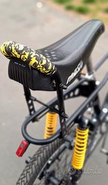 Telaio riverniciato nero opaco, cerchi nuovi, copertoni camera d'aria nuovi, paracatena e parafanghi creati su misura, Faretto posteriore, pegs da bmx nuovi, distanziali Pedali, pedali nuovi.