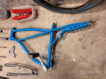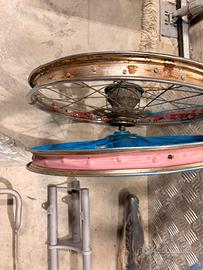 Vendo bicicletta salta foss speed cross in condizioni come da foto, completamente smontata,alcuni pezzi gia’ sabbiati, altri lucidati,telaio ancora da sverniciare, manubrio fari parafanghi mancanti.