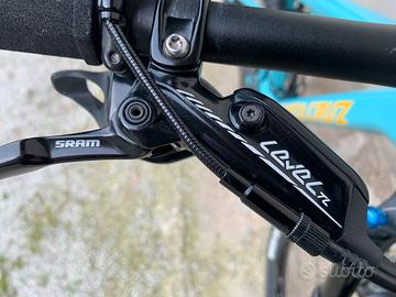 Blur c carbonio alto modulo tgL con sistema pivot , guarnitura sram x1 10/50 32t, ruote raceface con canale 25 e mozzo dt suisse 370, freni sram level T , reggisella telescopico 150mm, vendo per errata taglia, non scambio e non vendo a pezzi. La bici è perfetta e come nuova!