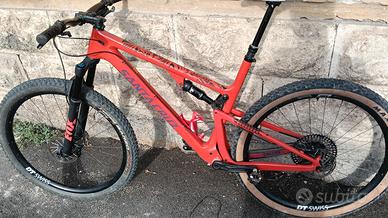Santa Cruz Blur CC tg. XL, altezza 175-190cm. Ammortizzatori fox 34 anteriore-posteriore, appena fatti revisionare. Trasmissione Sram GX, catena nuova e pacco pignoni cambiato verso giugno. Freni Sram Level T, pastiglie appena cambiate e dischi cambiati più spurgo sempre a giugno. Movimento centrale appena revisionato, insieme ai cuscinetti della serie sterzo. Reggisella telescopico comprato nuovo da qualche mese. Ruote 29 Dt-Swiss in carbonio latticizzate, lattice è stato appena rimesso, copertoni un po' usurati per normale utilizzo ma ancora in buone condizioni. Il telaio ha qualche segno ma per l' uso in fuoristrada è più che normale. Sono appena stati sostituiti i cuscinetti del carro posteriore ed è stata fatta manutenzione a tutti i leveraggi. Vendo senza pedali. Peso con ruote in carbonio 11kg, con ruote in alluminio originali 12,5kg. Le ruote in alluminio le regalo in caso di vendita da usare come di scorta, entrambe le ruote hanno camera d'aria. Valuto anche offerte per la sola bici con le ruote in alluminio. Le spese di spedizione per l' estero verranno calcolate in base al paese di provenienza dell' acquirente.