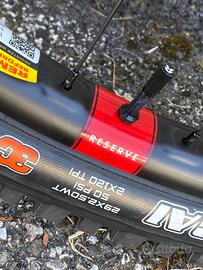 Nuova in pronta consegna , introvabile Telaio Materiale Carbon CC Telaio Carbon CC MX 170mm Travel, 4-Bar Peso 48.4 lbs / 21.95 kg Diametro ruote MX Sospensione Forcella Fox 38 Float Factory, Grip X2, 170mm Ammortizzatore FOX Float X2 Factory, 205x65 Guarnitura Pacco pignoni SRAM X0 Eagle T-Type, 10-52t Catena SRAM X0 Eagle T-Type, Flattop, 12spd Guidacatena OneUp Chainguide Guarnitura SRAM X0 Eagle Cranks, 155mm Deragliatore posteriore SRAM X0 Eagle AXS T-Type, 12spd Comandi SRAM AXS Pod Controller Rocker Paddle Freni Freni SRAM Maven Silver Disco anteriore SRAM HS2 200mm Disco posteriore SRAM HS2 200mm Cockpit Manopole/Nastro Santa Cruz Bicycles House Grips Manubrio Santa Cruz 35 Carbon Bar, 800mm Serie Sterzo Cane Creek 50 IS Integrated Headset Sella WTB Silverado Medium Fusion, CroMo SL Reggisella OneUp Dropper Post, 31.6 Attacco manubrio OneUp Stem, 42mm Ruote Cerchio anteriore Reserve 30|HD Mozzo posteriore DT Swiss 350, 15x110, 6-Bolt, 28h Pneumatico anteriore Maxxis Assegai 29"x2.5", 3C, MaxxGrip, Double Down Cerchio posteriore Reserve 30|DH Mozzo posteriore DT Swiss 350 DEG, 12x148x XD, 6-Bolt, 72t, 32h Pneumatico posteriore Maxxis Minion DHRII 27.5x2.5, 3C MaxxTerra, DoubleDown Ebike Batteria Bosch PowerTube Battery 600Wh Drive Unit Bosch Performance Line CX Specifiche Scatola movimento centrale EMTB Attacco freno posteriore 200 PM Interasse ammortizzatore 205 Offset della forcella 44 Attacco deragliatore anteriore NO Serie sterzo Integrated (IS41/52) Massima corona consentita 36 Diametro massimo disco 220 Larghezza massima pneumatico 2.5 Int. mozzo posteriore 148 Escursione posteriore 170 Shock Mounting Hardware inferiore 8x30 Shock Mounting Hardware superiore Trunnion Corsa dell'ammortizzatore 65 UDH YES