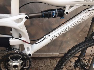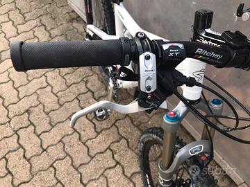 Vendo Santa Cruz Heckler in condizioni pari al nuovo usata un paio di volte e poi accantonata per problemi fisici .la bici è tutta montata con Shimano XT a 9 velocità con tripla ,forcella Fox Talas regolabile 100/120/140 , ammortizzatore Fox float rp 23 a due posizioni bloccabile, cerchi DT Swiss XR 4.20 e mozzi DT Swiss 370,manubrio in carbonio Ritchei WCS ,gomme Schwalbe.Unico proprietario,taglia M con ruote da 26 . Prezzo 800 ?