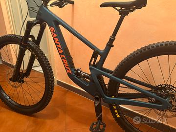 PREZZO TRATTABILE Peso32.02 lbs / 14.52 kg MaterialeCarbon C AmmortizzatoreFOX Float Performance DPS 210x55 ForcellaRockShox Lyrik Base, 150mm Deragliatore posterioreSRAM NX Eagle, 12spd ComandiSRAM NX Eagle, 12spd Pacco pignoniSRAM PG1230, 12spd, 11-50t CatenaSRAM NX Eagle, 12spd Movimento centraleSRAM DUB 68/73mm Threaded BB Serie SterzoCane Creek 10 IS Integrated Headset Pneumatico posterioreMaxxis Minion DHR II 29"x2.4", 3C MaxxTerra, EXO, TR Pneumatico anterioreMaxxis Minion DHR II 29"x2.4", 3C MaxxGrip, EXO, TR LiquidoReserve Tubeless Sealant Mozzo posterioreSRAM MTH 716, 15x110, Torque Cap, 32h Cerchio anterioreRaceFace AR Offset 30 29" Mozzo posterioreSRAM MTH 746, 12x148, 32h Cerchio posterioreRaceFace AR Offset 30 29" Disco anterioreAvid Centerline 180mm Disco posterioreAvid Centerline 180mm FreniSRAM G2 R GuarnituraSRAM Descendant Eagle 148 DUB 30t ManubrioRaceFace Aeffect R, 780mm Attacco manubrioBurgtec Enduro MK3, 42mm SellaWTB Silverado Medium CroMo ReggisellaSDG Tellis Dropper, 31.6 Manopole/NastroSanta Cruz Bicycles House Grips Escursione150/145mm Diametro ruote29"