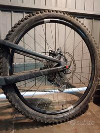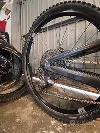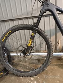 Santacruz Megatower telaio 2021, taglia M, freni shimano xt8120, ammortizzatore rockshox a molla, forcella ohlins rxf 36 m2, reggisella, manubrio rareface sixc 35 carbonio, sella wtb santacruz originale, manopole decal dyedbro, ruota anteriore race face arc 30, ruota posteriote crenck brothers, cambio 12 velocità Sram GX con cassetta 10/50. No pedali.