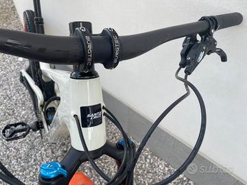 Con upgrade: manubrio Santa Cruz in carbonio, corona Carbon-Ti, Ruote Mavic Crossmax XL, gomme Vittoria Syerra tubeless.