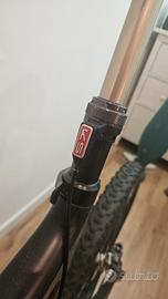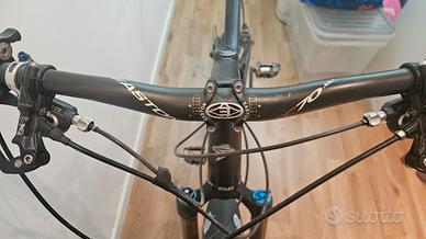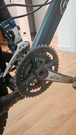 Telaio in carbonio taglia L, ammortizzatore Fox Float RP23, escursione 140mm, forcella Fox Float 34 Performance 150mm (con adesivi Factory), trasmissione 1x10, cambio Shimano XTR, comando XT, guarnitura XT, freni Formula T1S, ruote Mavic Crossmax st 26 tubeless con Maxxis ardent lust, manubrio Easton Haven xc70xc, attacco manubrio ES90, inoltre reggisella telescopico KS LEV 125mm.