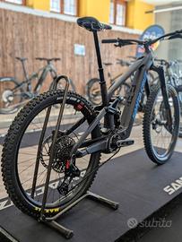 Il telaio in carbonio CC ha una colorazione unica ripresa anche dai freni Maven SLT, la nuova generazione di telai eBike con sistema 4bar è azionato da un altra novità di quest' anno, l' ammortizzatore Fox Float X2 (con idraulica monotubo più efficace e duratura).