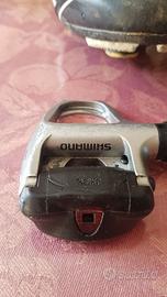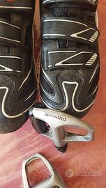 Pedali shimano e scarpe per bici da corsa Vendo per inutilizzo pedali shimano BdC con scarpe nr. 43-44. Come da figura sono in orttimo stato in quanto usate solo 11 mesi. Vendo entrambi a 80 €. INFo Francesco 347 7613489