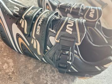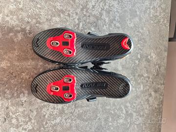 vendo per non utilizzo scarpe bici da corsa Nalini, suola in carbonio, TG 43, ome nuove usate solo 3 volte, chiusura mista a cricchetto e strappo, unico neo manca tacchetto rosso posteriore scarpa sx.