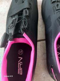 Vendo scarpe per bici da strada BRN nero/rosa fluo TG. 37 In ottime condizioni Usate pochissimo per cambio numero.