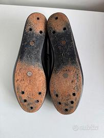 Scarpe bici da corsa in pelle nera, suola in cuoio, DP Milano Detto Pietro, made in Italy, vintage anni '70, misura 41.