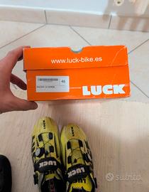 Scarpa Luck, numero 46. Da considerarsi in buone condizioni, qualche segno di utilizzo come da foto, tallone appena sostituito, tacchette Look in buone condizioni, boa funzionante, suola in carbonio.