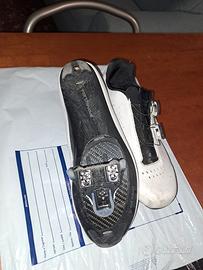 vendo scarpe da ciclismo "strada" n.44 northwave rivolution 3 scuola in carbonio colore bianco usate per 1 stagione. comprese di attacchi shimano blu.