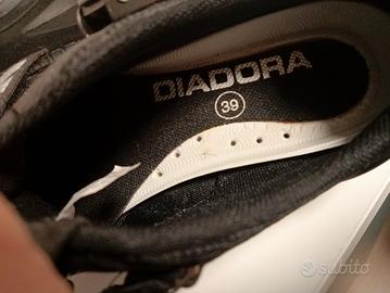 Scarpe ciclismo Diadora n.39 in più che ottime condizioni fuori e dentro.Mancano i tacchetti facilmente reperibili.