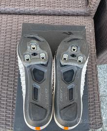 scarpe ciclismo DMT KR SL bianche con lacci, sono le scarpe di Tadej Pogačar! In ottime condizioni, utilizzate saltuariamente circa un anno. I graffi bianchi sulle suole sono superficiali e normali per suole in carbonio. Taglia 40,5, sono lunghe 26 cm ed equivalgono ad un 41 per Shimano / Specialized, con pianta leggermente più stretta. Borsa originale e tacchette look incluse. La scatola originale non è compresa, verranno spedite in una scatola per scarpe generica.
