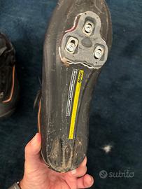 Ottime scarpe invernali per bdc Mavic, taglia 42 2/3 (USA 9). Tenute molto bene con un singolo punto esterno leggermente rovinato nella parte interna del piede (vedi foto). Splendide e super termiche per inverno.