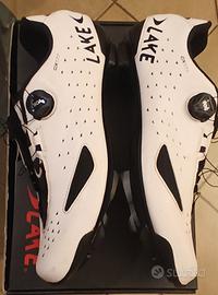 Vendo scarpe ciclismo Lake CX177-X Wide n.48 chiusura con 1 boa, pari al nuovo ed usate in modo maniacale solo per uscita domenicale, senza tacchette (in foto), per problemi legati ai miei piedi devo prendere altro. Presente scatola originale, posso spedire.