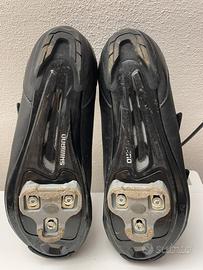 Vendo scarpe da ciclismo su strada Shimano modello RP1 (RP100), colore nero, taglia 44. Le scarpe sono ideali sia per uscite su strada che per sessioni di Indoor Cycling/Spinning. Dettagli: • Taglia: 44 EU. • Chiusura: Doppio cinturino a velcro per una calzata rapida e sicura. • Condizioni: Molto buone, utilizzate con cura. Presenti normali segni di utilizzo sulla suola che non influiscono minimamente sulla performance. • EXTRA: Vendo complete di tacchette già montate e incluse nel prezzo! Scarpe leggere, rigide il giusto e molto traspiranti grazie alle prese d'aria sulla punta e sulla suola. Disponibile per spedizione o consegna a mano. Nelle scarpe Shimano la calzata è spesso un po' "stretta". Consigliate per chi porta solitamente un 42.5 o 43 di scarpe sneakers.