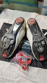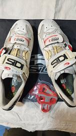 Vendo scarpe SIDI Mod. Ergo 3 n.41,5 colore bianco con tacchette Look nero+ tacchette Look rosse NUOVE. Usate ma sempre in buono stato e sempre funzionanti. Sono come in foto usate! Spese corriere a carico dell'acquirente.