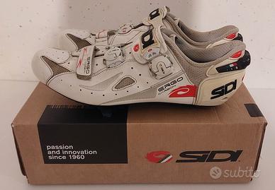 Misura 46.5, suola in carbonio ed attacchi per pedali Shimano. Eventuale spedizione 10 €.
