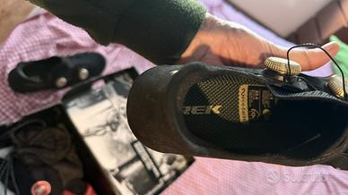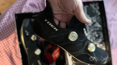 Usate 5 volte Caratteristiche salienti delle scarpe da strada Trek RSL Knit L'innovativo materiale a maglia garantisce una calzata confortevole, simile a quella di un calzino, e un'eccellente traspirabilità Le zone di sollievo METNET estensibili si adattano al piede per alleviare i comuni disturbi del piede La nuova forma Trek Pro offre una calzata più ampia che si adatta meglio al piede medio Due quadranti Li2 BOA consentono una regolazione precisa della calzata in pochi secondi La piastra in carbonio 100% OCLV assicura un'eccezionale trasmissione della potenza per un'efficienza di pedalata ottimale La coppa interna del tallone e la fodera antiscivolo nella zona del tallone assicurano una calzata sicura e aumentano l'efficienza Le solette sono realizzate con il sostituto dell'EVA a base biologica Rise by BLOOM Compatibile con tacchetti a 3 fori Dettagli delle scarpe da bici da corsa Trek RSL Knit Progettata nel corso di anni di sviluppo, la scarpa assicura il massimo trasferimento di potenza e il massimo comfort per tutto il giorno, in modo da poter dare il meglio di sé in ogni corsa e in ogni gara. Il materiale a maglia all'avanguardia garantisce una calzata sostenuta e simile a una calza. Le innovative zone di scarico METNET si flettono nei punti giusti, mentre le fasce METNET power tengono il piede saldamente in posizione per la massima efficienza. In combinazione con la piastra in carbonio 100 % OCLV e i due twist lock Li2 BOA, questo scarpone è veloce, comodo e leggero.