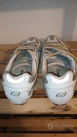Scarpe da ciclismo Force, numero 45, usate ma in buone condizioni. Suola rigida per una migliore trasmissione della potenza, chiusura con BOA e velcro per una calzata sicura e regolabile. Compatibili con attacchi SPD-SL e Look Keo. Presentano alcuni segni di usura, ma perfettamente funzionali. Ideali per ciclismo su strada o indoor. Per ulteriori dettagli o foto, contattami!