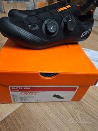 vendo scarpe ciclismo DMT KR0 taglia 44.5. sono praticamente nuove, hanno 2 uscite all'attivo e poi più indossate. le vendo perché ho la pianta del piede larga e non mi ci trovo molto a mio agio purtroppo. perfette con scatola e scontrino.