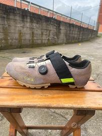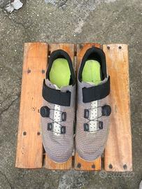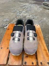 vendo scarpe fizik con suola totalmente in carbonio taglia 43, dotate di siatema boa e strappo perfettamente funzionanti, tacchette shimano spd, le scarpe hanno un anno di vita e la suola è rigidissima.