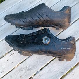 Causa inutilizzo vendo scarpe GRAVEL/MTB SHIMANO RX8 con suola in carbonio e sistema di chiusura Boa. Scarpe molto comode ed allo stesso tempo rigide per una pedalata efficace. Sono nere ma come si può vedere dalle immagini sono leggermente camouflage. A parte normali segni sotto alla suola non presentano imperfezioni o altro.