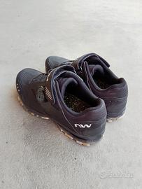 Scarpe da ciclismo per MTB o Gravel marca Northwave, modello spider plus 3, taglia 42. Possibilità di montare tacchette SPD o simili sulla suola. Permettono di camminare con facilità anche quando tocca spingere la bici sui sentieri... Vendo per cambio sport (ciclismo su strada), usate per 3 uscite al massimo.