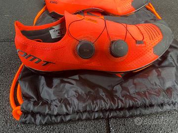 Queste scarpe da ciclismo sono l'eccellenza del comfort e delle prestazioni! La doppia chiusura BOA e la tomaia in tessuto con tecnologia 3d KNIT le rendono comode come indossare un calzino. Grazie alla suola in carbonio sono leggerissime, solo 210 grammi. Praticamente nuove, utilizzate soltanto x prova! vendo per numero sbagliato