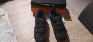 scarpe da MTB praticamente nuove, usate 3/4 volte causa musira errata, le scarpe in teoria sono 44 ma a me vanno strette nonostante porti quel numero, incluse ci sono anche le tacchette per pedali spd, spedizione a carico dell' acquirente