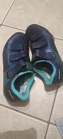 Scarpe Shimano RC1 per bici da corsa con attacchi a tre fori, usate ma in buone condizioni. Chiusura con velcro (no Boa). Colore blu. Taglia 36. Adatte per categoria Giovanissimi. Vendo per cambio numero.