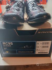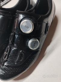 Vendo bellissime scarpe Shimano SH-RC902S Usate ma ancora in buonissimo stato. Sono presenti dei segni sulla suola a causa degli spostamenti a piedi che inevitabilmente si fanno. La tomaia però non ha un graffio.