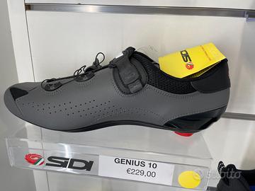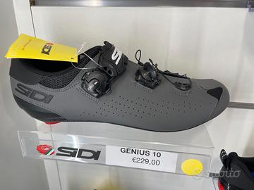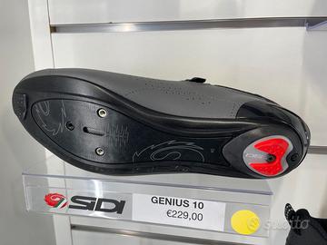 Le scarpe Sidi Genius 10, progettate per il ciclismo su strada a prestazioni medio-alte, presentano un design elegante e ricco di dettagli tecnici. La loro suola in nylon e fibra di carbonio è sinonimo di rigidità e trasmissione della potenza ad ogni pedalata, oltre che di lunga durata. Il collo del piede con microperforazioni strategiche ti permetterà di pedalare con un buon sostegno e una buona protezione del piede, il tutto senza sacrificare la ventilazione. Il capocorda della suola posteriore può essere facilmente sostituito per aumentare la durata di queste scarpe da ciclismo su strada. Il sistema di chiusura Tecno-3 ti permetterà di ottenere rapidamente una calzata personalizzata grazie ai suoi quadranti facili da usare. Per completare la calzata, i quadranti Tecno-3 sono dotati del cinturino SOFT INSTEP.