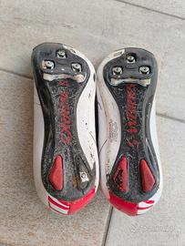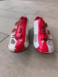 Vendo scarpe Specialized Sworks Road numero 43 usate diversi anni ma in buono stato. BOA perfettamente funzionanti, tacchette comprese. Come si vede in foto, manca il tacco destro posteriore in gomma.
