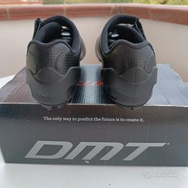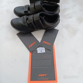 Vendo scarpe per bici da strada marca DMT, modello R6, taglia 45 (le consiglio a chi di solito indossa 44 perché vestono piccole). Le condizioni sono eccellenti e presentano lievi graffi nella parte anteriore della suola, come evidenziato dalle frecce in foto. Le tacchette non sono incluse ed il prezzo non è trattabile (nuove costano 100€)