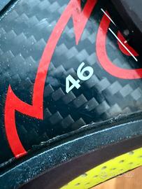 Vengo scarpe SIDI complete di tacchette. Modello Triathlon In buone condizioni ad eccezione della scarpa dx graffiata sul fianco come da foto Chiusura con strappo. Tg 46 Suola carbonio